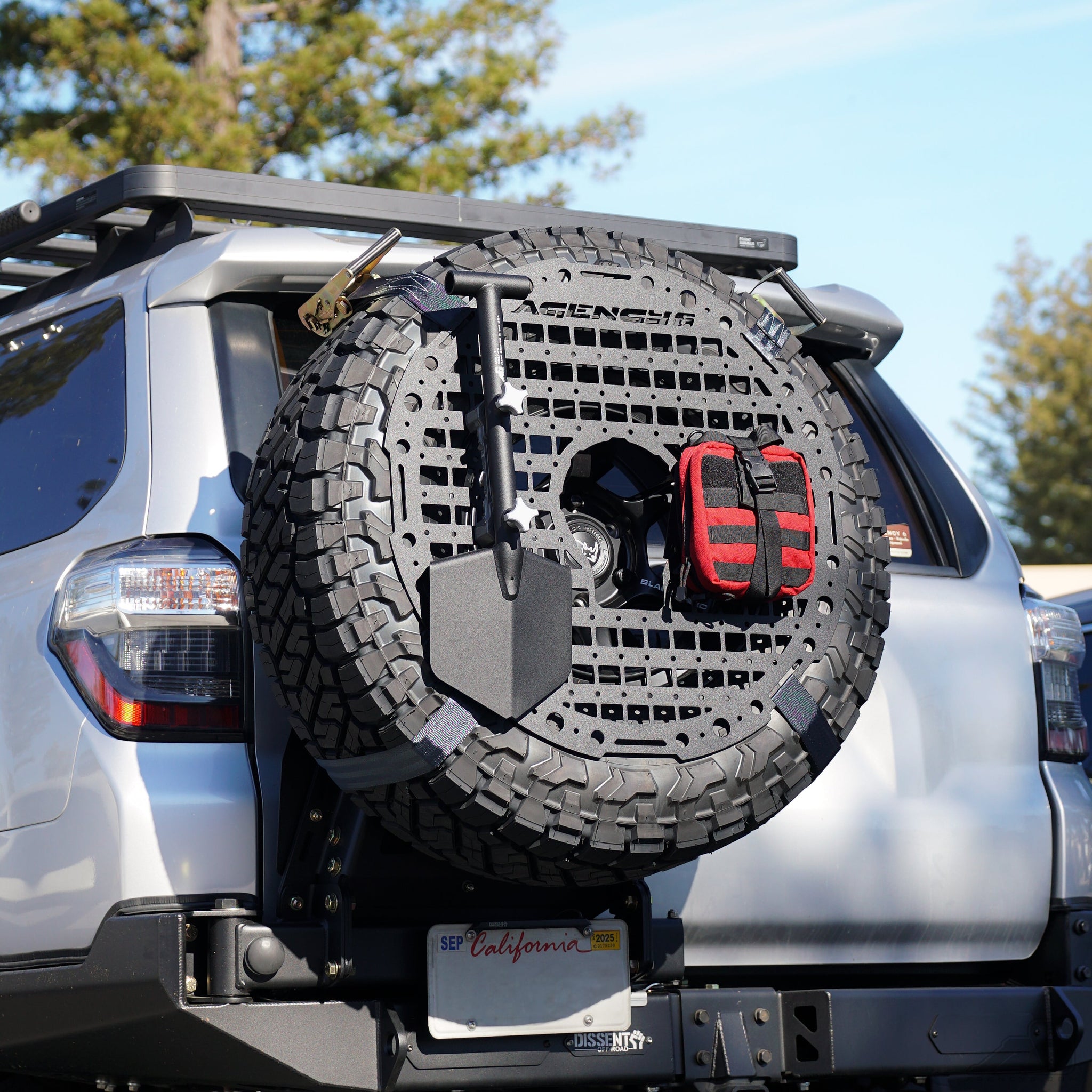 Space is at a premium on your adventure and Agency 6 is here to help. The Agency 6 Tread GRIDS panel easily attaches to your spare tire and give you space to mount shovels, axes, Rotopax and more. Fits tires 30-40 inches in diameter
