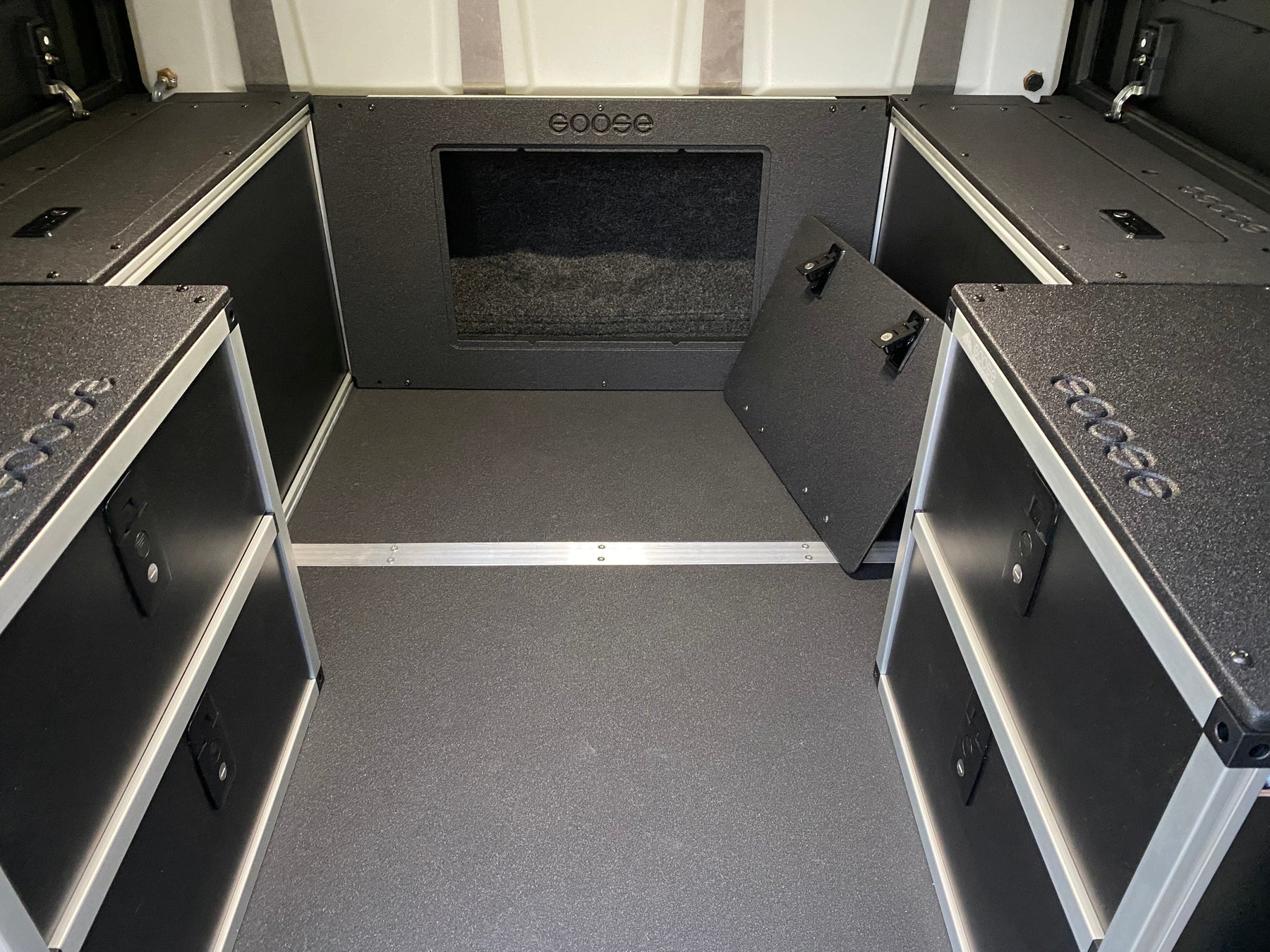 The Alu-Cab Bulkhead Panel is an option for Alu-Cabin Canopy Campers that have Goose Gear storage modules on both sides of the camper. This product requires the front Utility Modules for proper fitment and securing as it is bolted to the Utility modules using the supplies L Brackets.