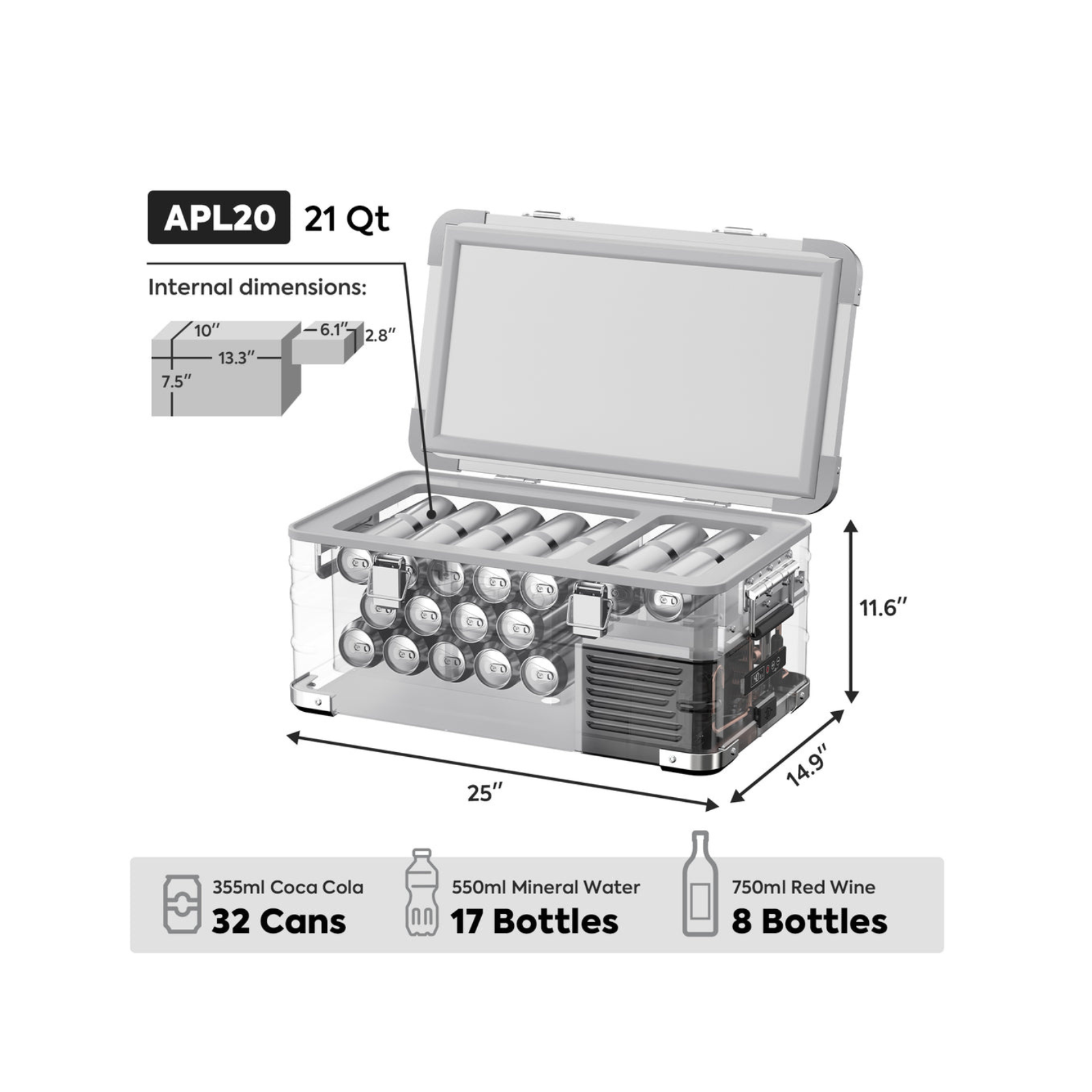 Our APL20 Light Duty Aluminum Freezer is the ideal portable cooling solution, weighing just 22.9 lbs and running at an ultra-quiet ≤32 dB. With a deep cooling range from -4°F to 68°F, it delivers professional-grade performance in a compact 20L (21QT) design. Backed by a 5-year warranty on the SECOP compressor and supported by LA-based after-sale service, it ensures reliability for every journey.