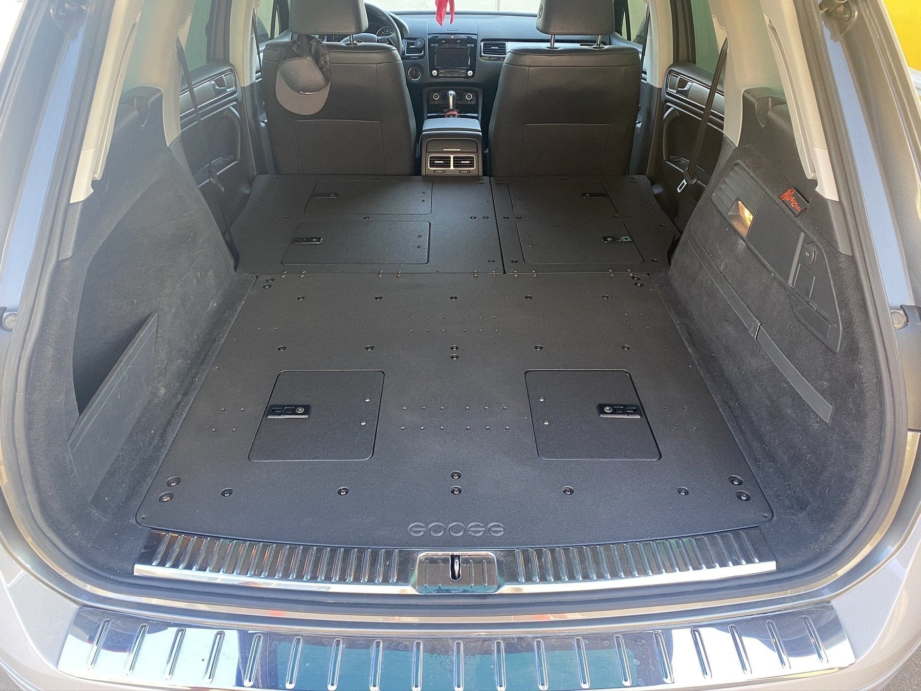 The Porsche Cayenne Second Row Seat Delete Plate System™ allows you can now create a large and flat platform for various uses. This system makes a perfect sleeping platform as well as storage space for larger items you want to keep inside your rig such as surfboards etc.