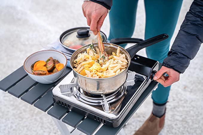 - BUILT-IN WINDBREAKER: Our portable butane stove with a windbreaker protects the flame from wind and air conditioning, making it the perfect indoor and outdoor portable cooktop