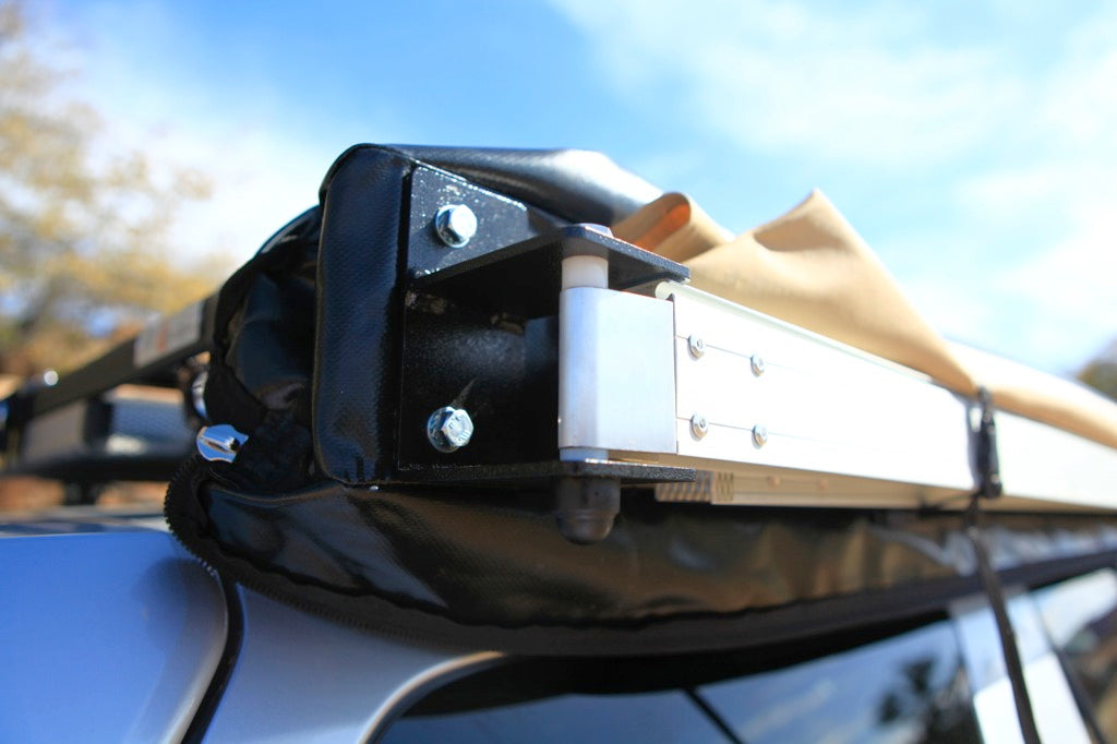 The Eezi-Awn Swift Awning is designed to easily mount to the side of your K9 Roof Rack. Get a basic idea of which mounts and/or brackets you may need by checking out our Awning Mounts Page. Specific requirements may vary between vehicles, but we are always happy to personally assist : Sales@Equipt1.com -or- 1-866-703-1026.