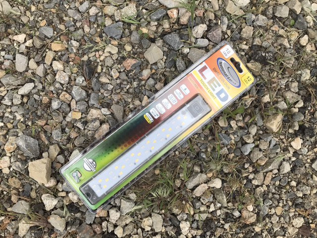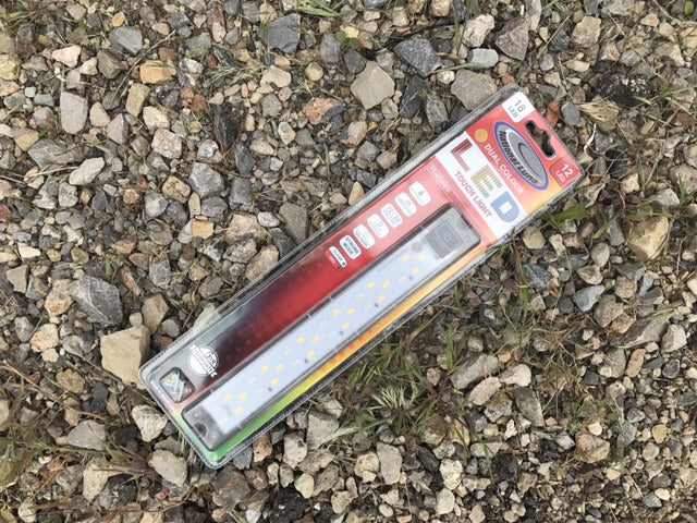 | 18+12 LED CLEAR/RED | This hard mount 18+12 LED Clear/Red light responds to touch and offers two colors, clear and red, both with 3 settings. The 18 LED Clear settings are as follows: 1) a low (75 Lumens), medium (284 Lumens), and high (547 Lumens). The 12 LED Red settings are as follows: 1) a low (15 Lumens), a medium (54 Lumens), and high (99 Lumens). The electro-static switch, operated by touch, remains illuminated by a soft backlight when turned OFF and acts as a helpful locator light in complete darkness. It measures 10" x 1". |