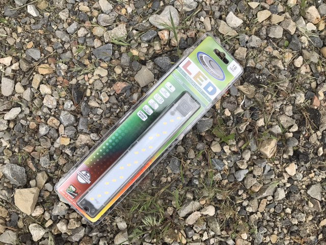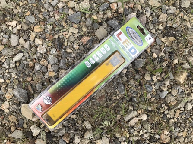 This hard mount 18 LED Yellow light responds to touch, is great for attracting less bugs, and offers 3 settings: 1) a low (61 Lumens), medium (235 Lumens), and high (456 Lumens). The electro-static switch, operated by touch, remains illuminated by a soft backlight when turned OFF and acts as a helpful locator light in complete darkness. It measures 10" x 1". |