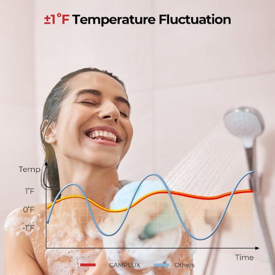 • 【±1℉ Temperature Control】Maintains temperature fluctuations within ±1℉, ensures precise hot water control with advanced sensors and smart chip with 1,000s calculation for consistent comfort shower