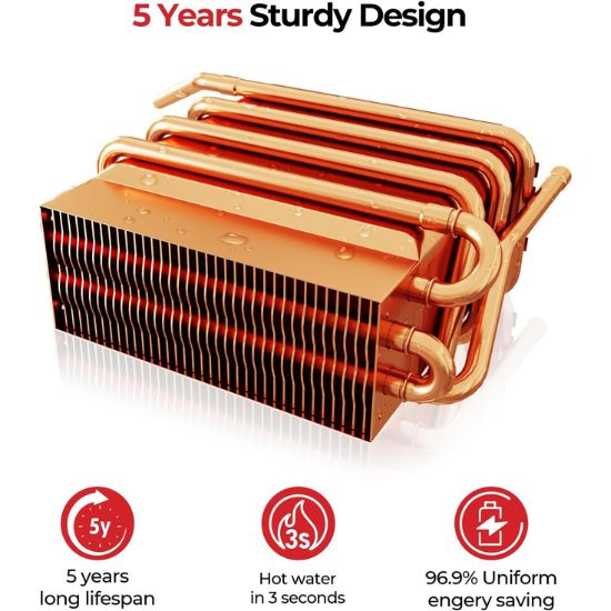 • 【 5 Years Durable Design】Built last for a 5-year lifespan, with an oxygen-free copper heat exchanger for 96.9% efficiency to deliver hot water in 3 seconds
