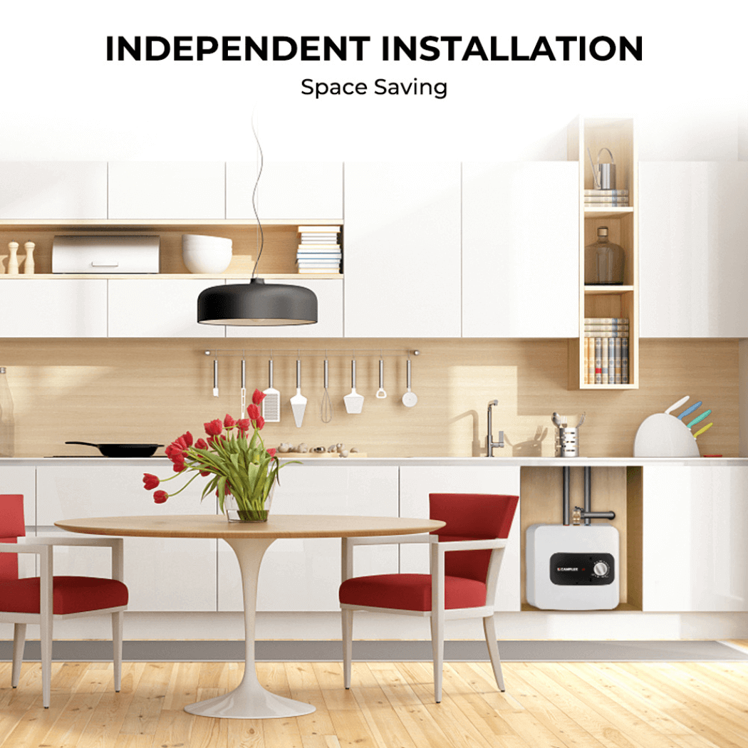 - MULTIPURPOSE - Can be shelf, wall or floor mounted; Simply tap into the cold water line and install the water heater directly at the sink to provide hot water. Product dimension:12.9" W x 12.9" H x 11.5" D.
