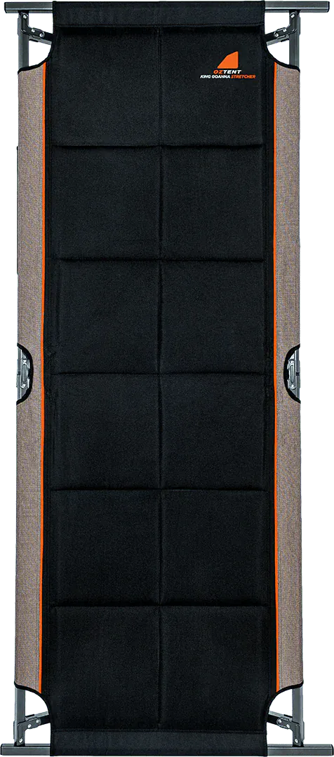The OZTENT King Goanna Cot [Series II] redefines comfort and practicality. Over 2-metres long, with an easy to reach storage system and weight-rated to 150kg, this stretcher is designed for campers of all shapes and sizes. Fully padded to deliver insulation and comfort, the OZTENT King Goanna Cot [Series II] is built atop a X-legged frame to deliver sturdiness, while making it easy to set up and quick to pack down. This stretcher is big on size and comfort, and tight on storage.