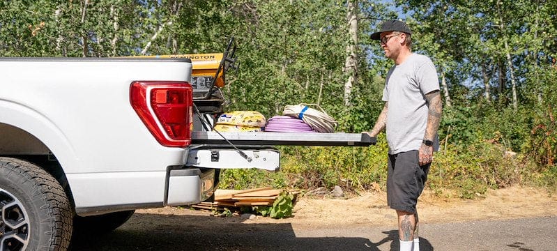 The DECKED Cargo Glide truck bed sliding tray is a sliding tool box that makes loading, unloading and accessing your tools and gear easy, safe and fast. Never climb into the bed of your truck to retrieve your gear ever again! Check out GTFO's full selection of Decked drawer and cargo glide solutions, and get the best help in the industry!