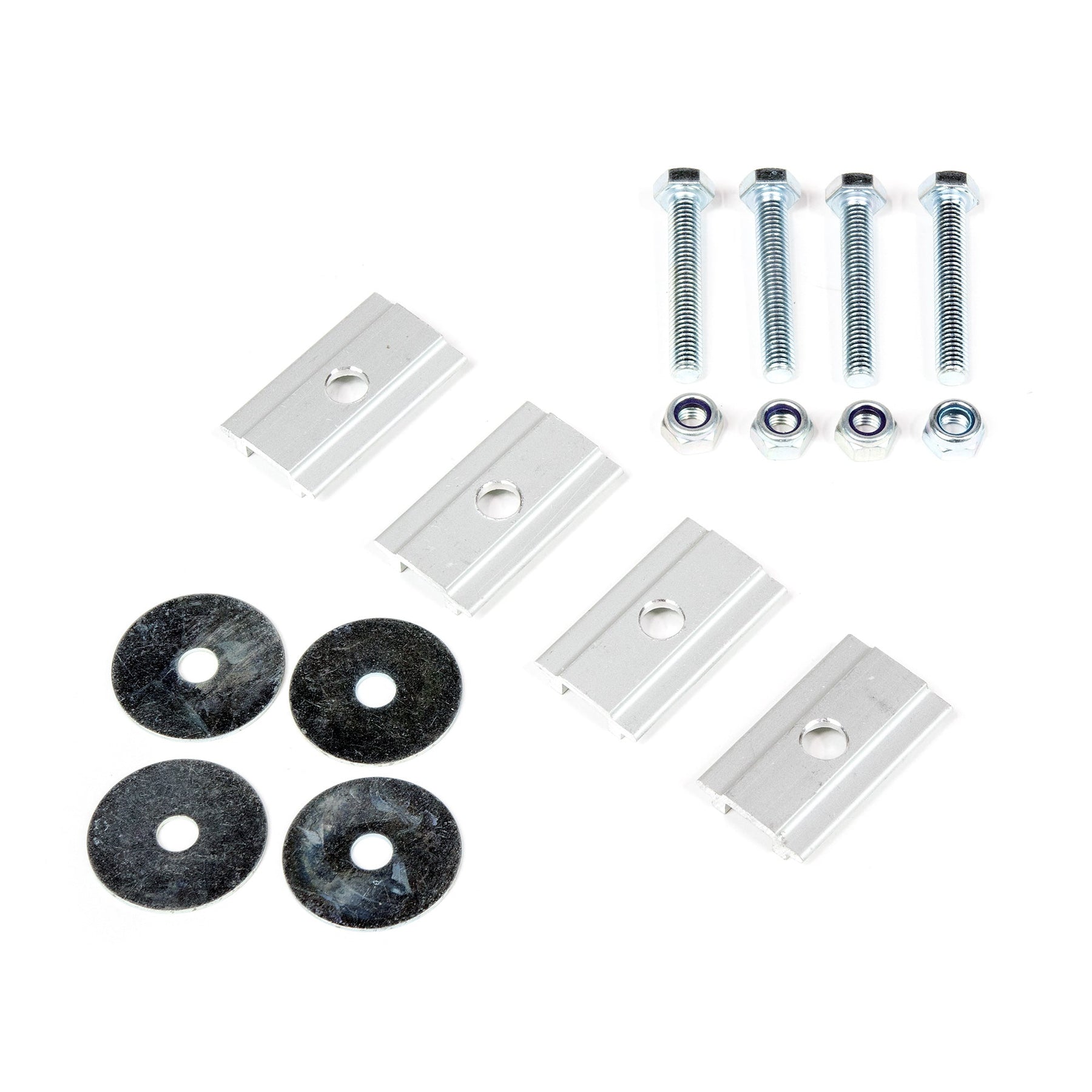 The DIY (Do It Yourself) Installation Kit contains all the hardware components needed to mount your Eezi-Awn tent. Eezi-Awn's intent with this kit is to bolt the tent down to a flat surface, or through a load bar. The Rectangular washers are designed to captivate the head of an 8mm bolt. Length of bolt can be changed to suit your needs.