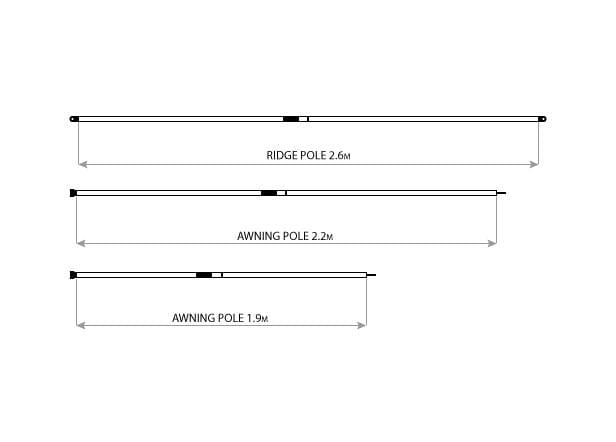 Use these poles to extend and stabilise OZTENT Awnings, side panels, and various other accessories or for any other application you can think of.