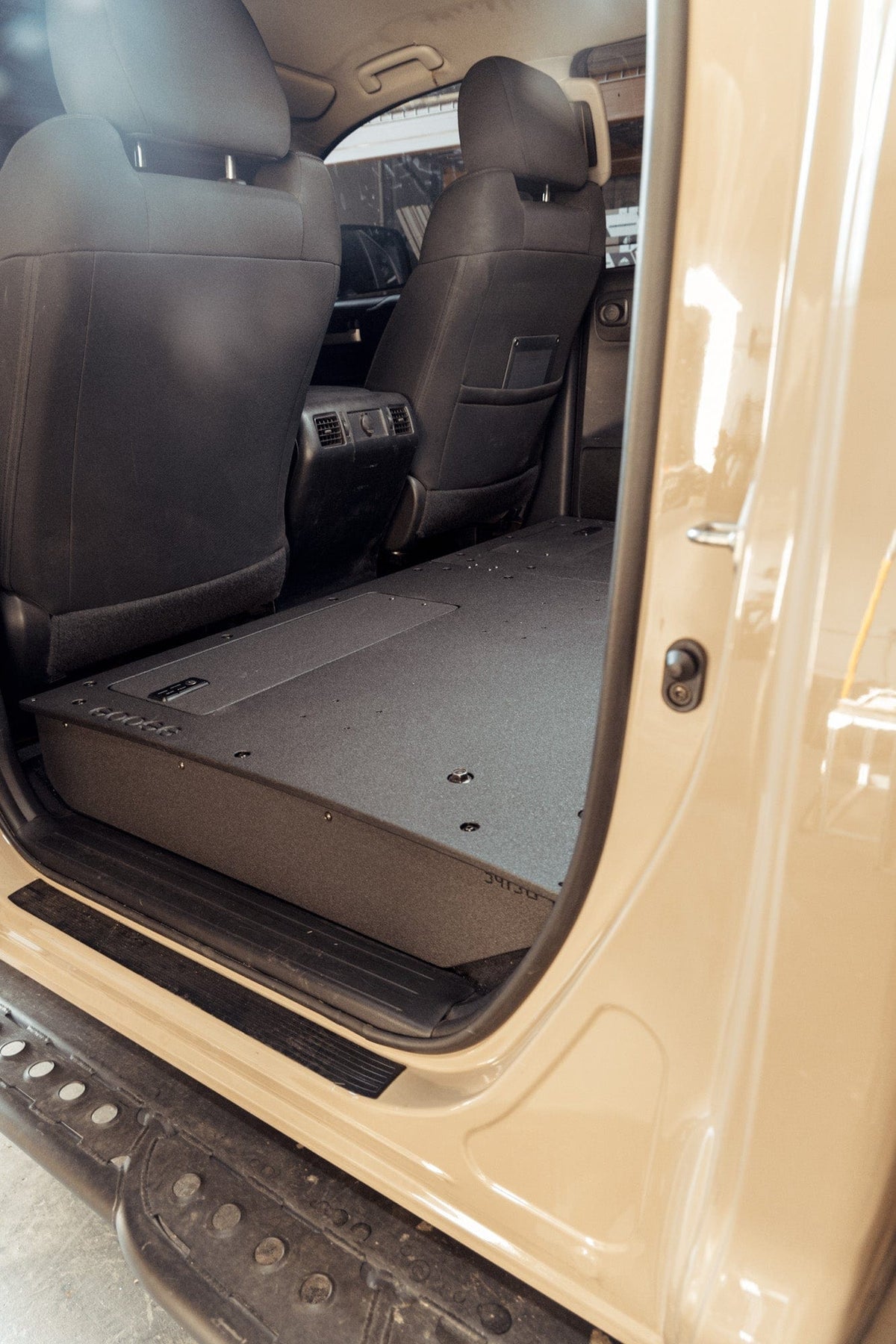 The Toyota Tundra 2.5 Generation CrewMax Second Row Seat Delete Plate System provide a secure and flat mounting and storage solution for your vehicle.