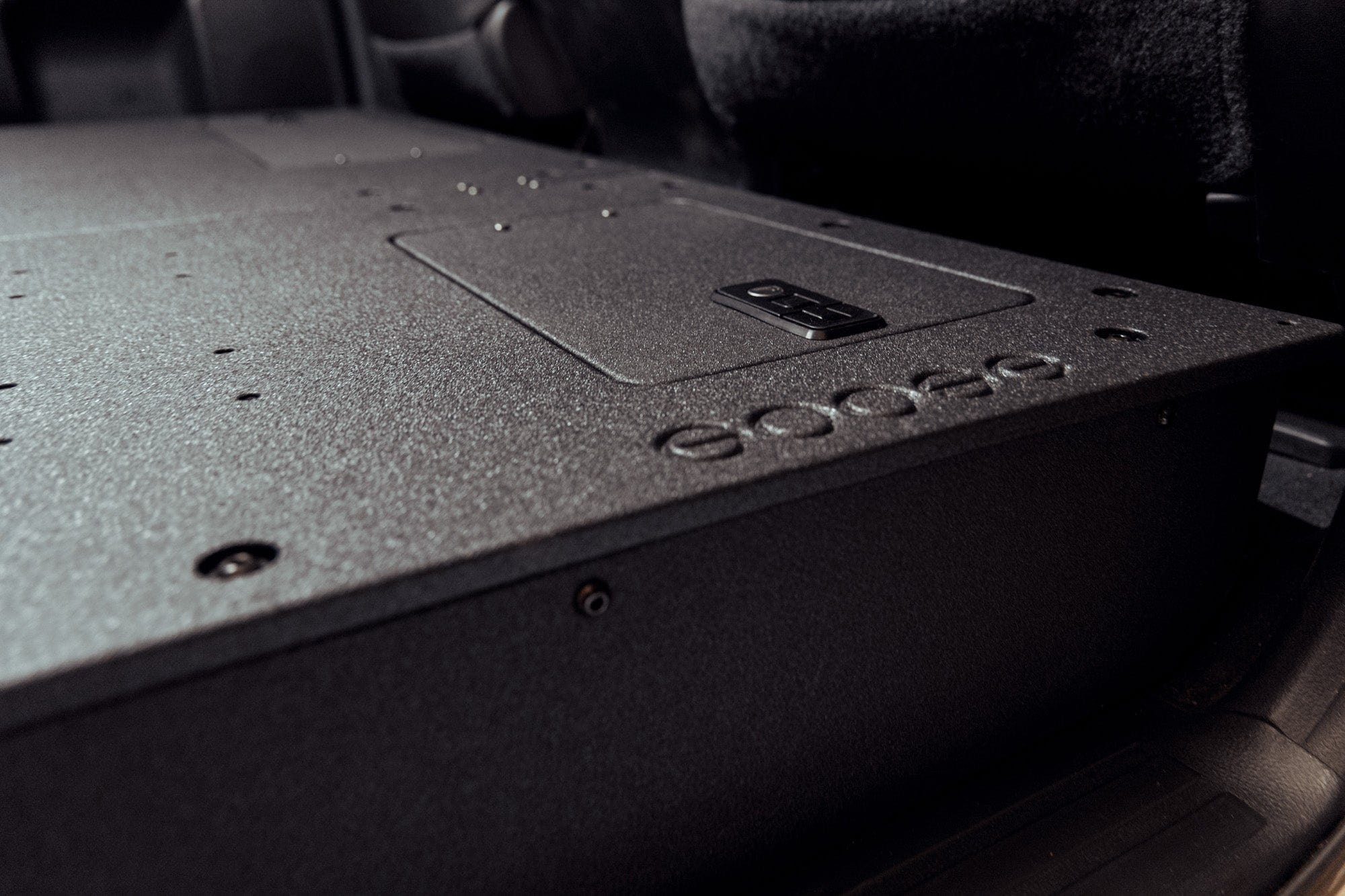 The CrewMax Seat Delete includes the Seat Delete Plate System and Back Wall, opening the second row of the truck creating a massive platform perfect for a bike, pet, refrigerator, cargo boxes etc. With the addition of the back wall plate, it provides an additional space to mount your personal gear and belongings keeping them off of the floor and within easy access. Commonly mounted items include fire extinguishers, first aid kits, electronic systems etc.