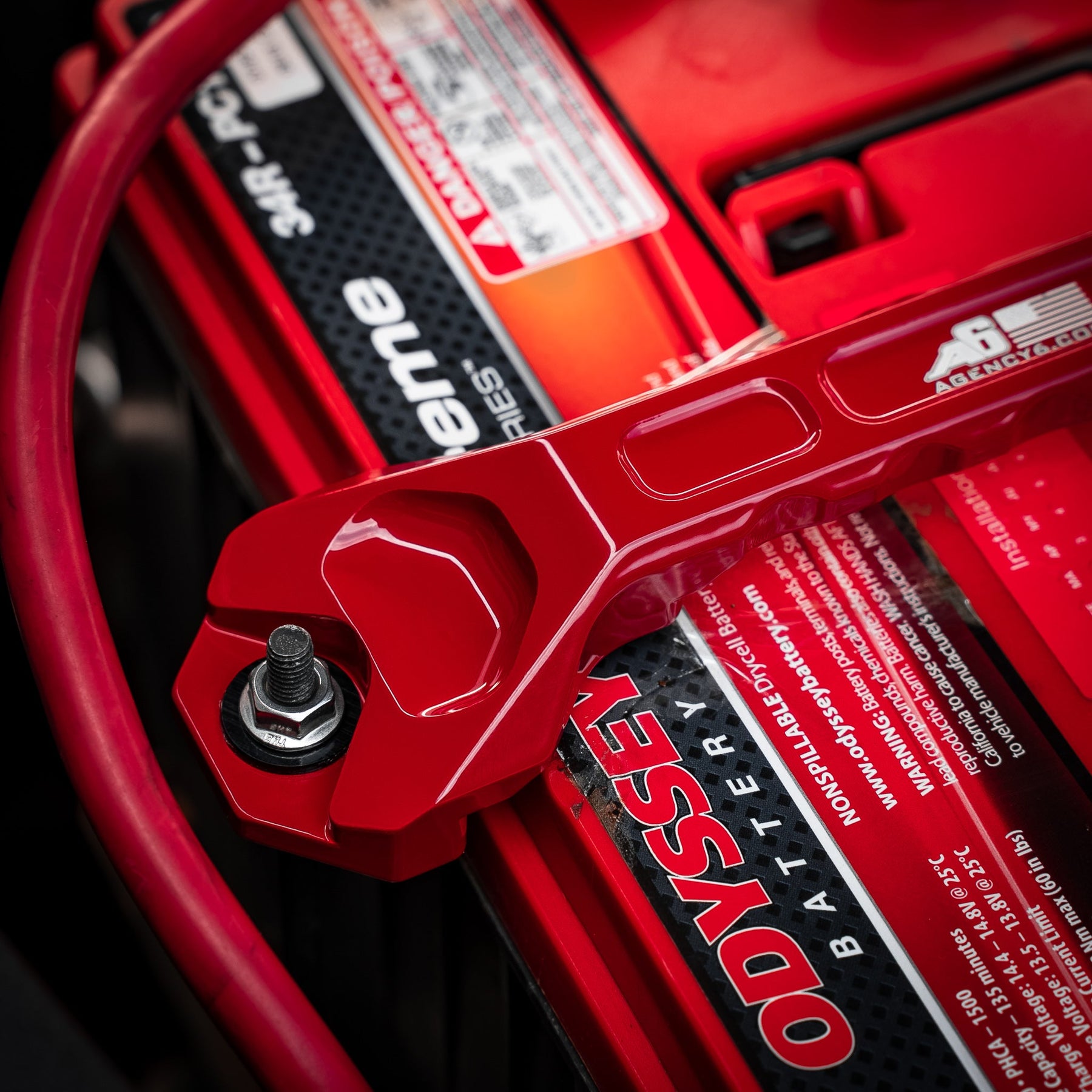 Easy installation, uses the OEM battery hold down tray bolts, and the supplied (x2) 18-8 Stainless Steel M6-1mm flange nuts with (x2) black nylon washers.